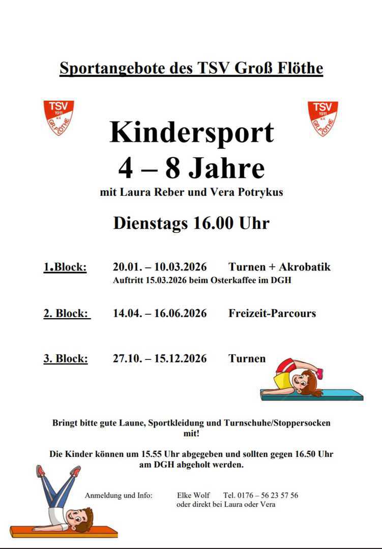 Für Kinder ab 4 Jahren. In jedem Block wird ein Schwerpunkt festgelegt und es werden Grundfertigkeiten vermittelt. Gemeinsam und mit viel Spaß sollen dabei neue Bewegungsabläufe entdeckt werden.